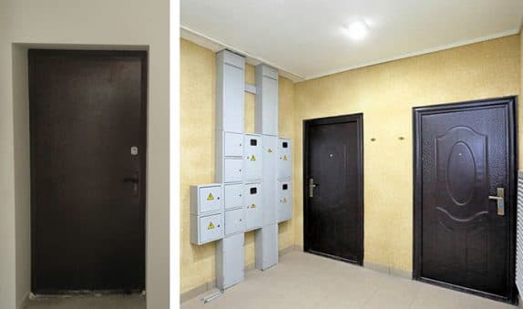 Установка входной двери – прочной, утепленной, с надежным замком.